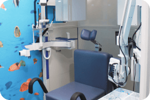 ご安心ください。当院では一人ひとりに合わせた対応を心がけております。診療台にあがることが難しいお子様には、おもちゃのある部屋で保護者の方と一緒にお膝の上で健診をしております。治療の難しいお子様は、トレーニングをしながら少しずつ機械に慣れていただいて、治療に進みます。歯医者さんに行くのを楽しみにしてもらえるよう、スタッフ一同全力でサポートさせていただきます。