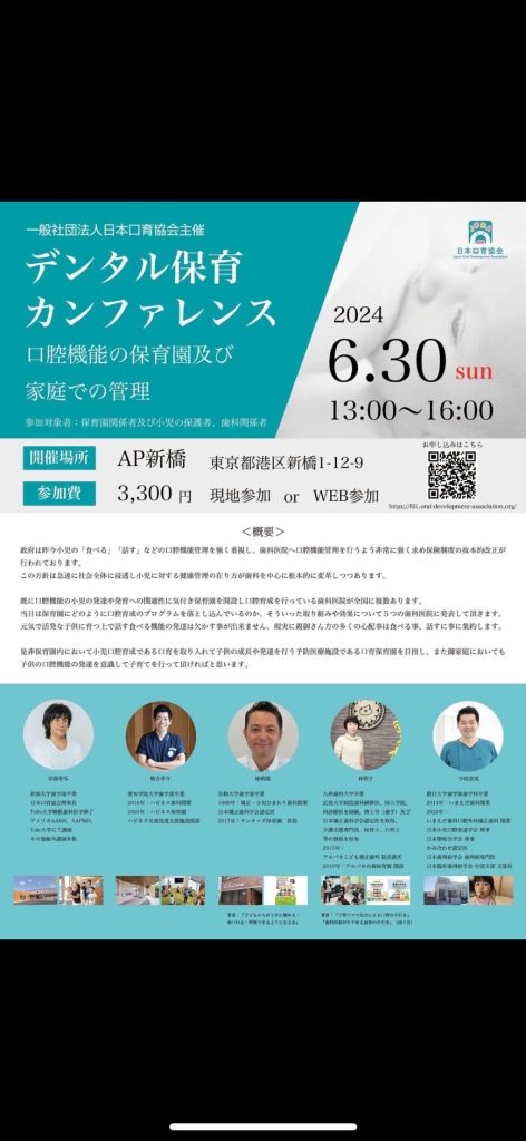 「デンタル保育カンファレンス」で講演を行いました。 「デンタル保育カンファレンス」で、院長、副院長、サンキッズ保育園園長 酒井が講演を行いました。 2024年06月30日(日) 【前へ】宮崎市立小松台小学校に衛生指導へいきました。 【次へ】宮崎予防歯科研究会を行いました。(松尾貴臣氏 ホスピタルライブ) 活動報告一覧