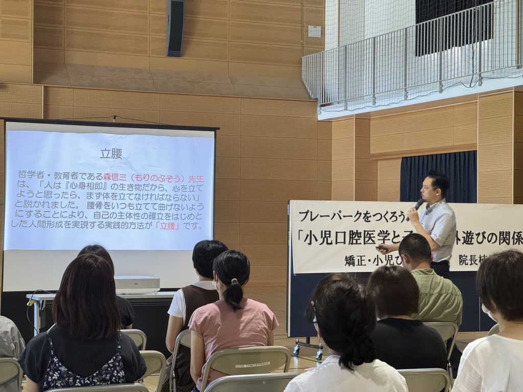 プレーパークをつくろう「小児口腔医学と子どもの外遊びの関係」と題して院長が登壇しました。 2024年09月08日(日) 【前へ】「歯科衛生士による歯科衛生士のための交流会2024」にて歯科衛生士・坂本が講演し、スタッフ11名が参加しました。 【次へ】青島地区交流センターで歯科衛生士・服部、受付・中谷が歯磨き指導を行いました。 活動報告一覧